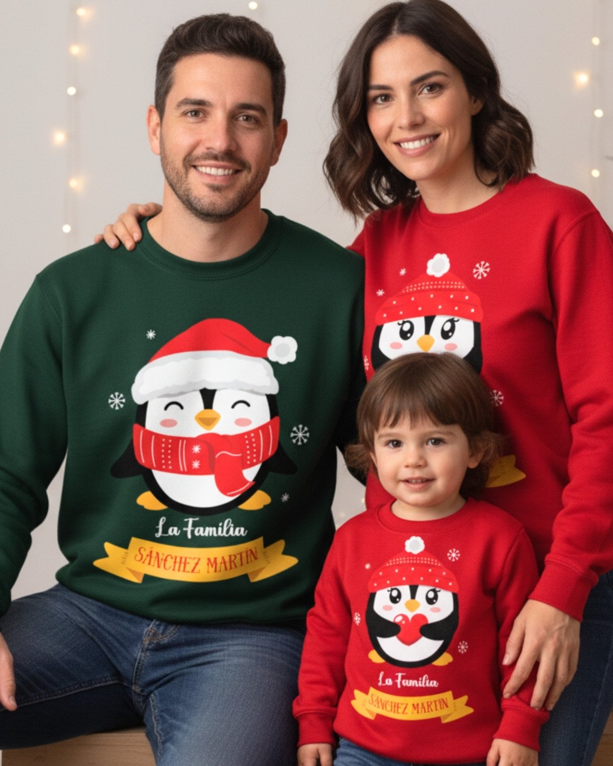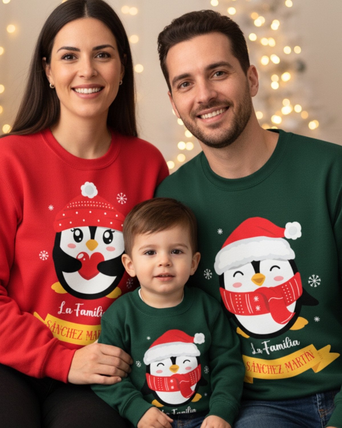 Conjuntos de jerséis de Navidad con pingüinos super bonitos. Jerséis afelpados, muy suaves, cómodos y calentitos.