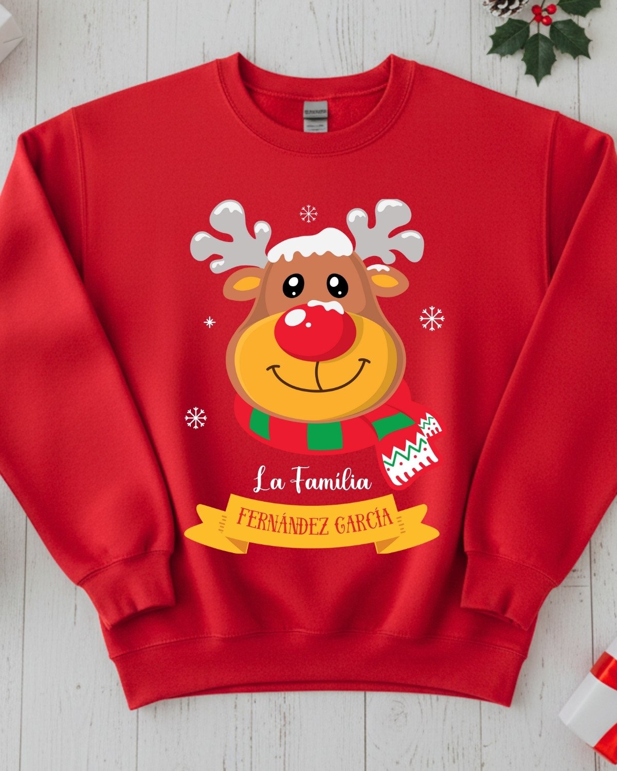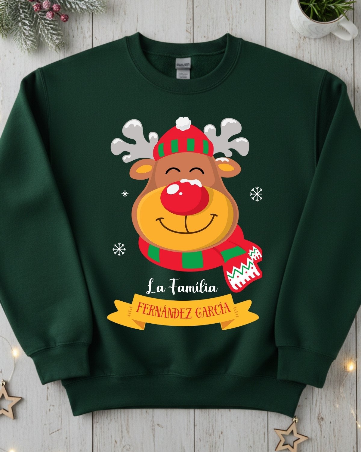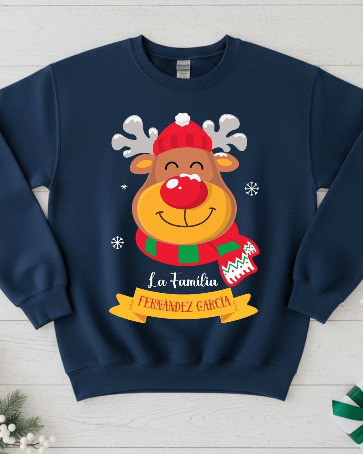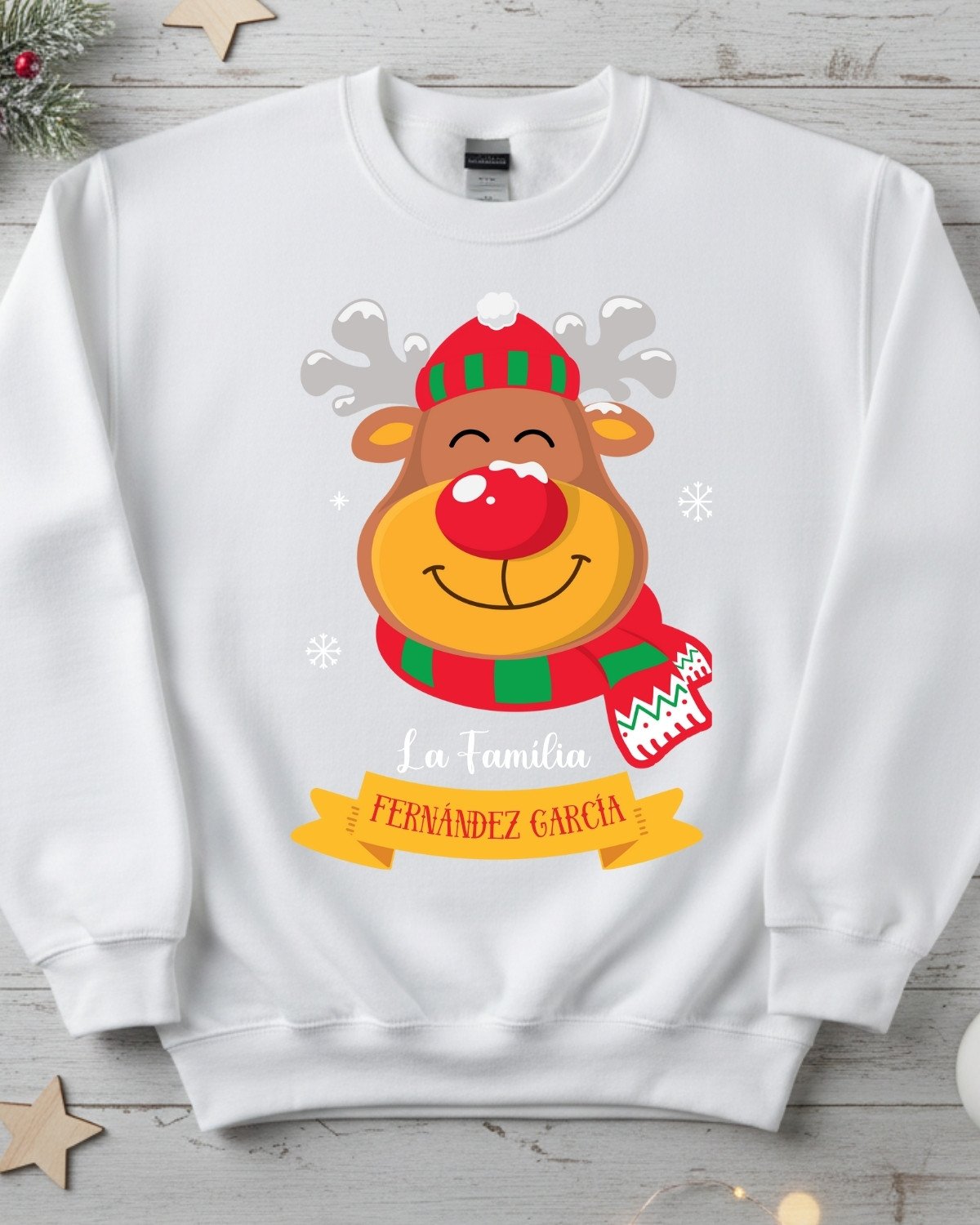 Jerséis de Navidad con renos adorables, personalizados para tu familia. Jerséis afelpados, muy suaves, cómodos y calentitos.