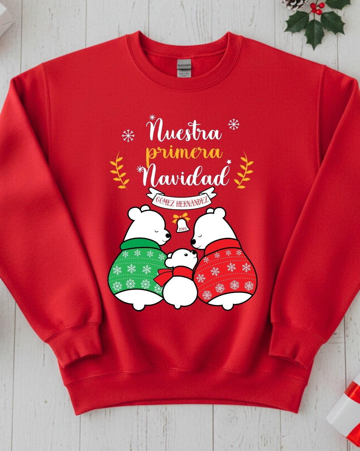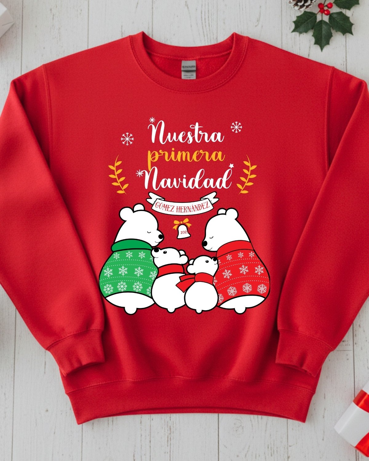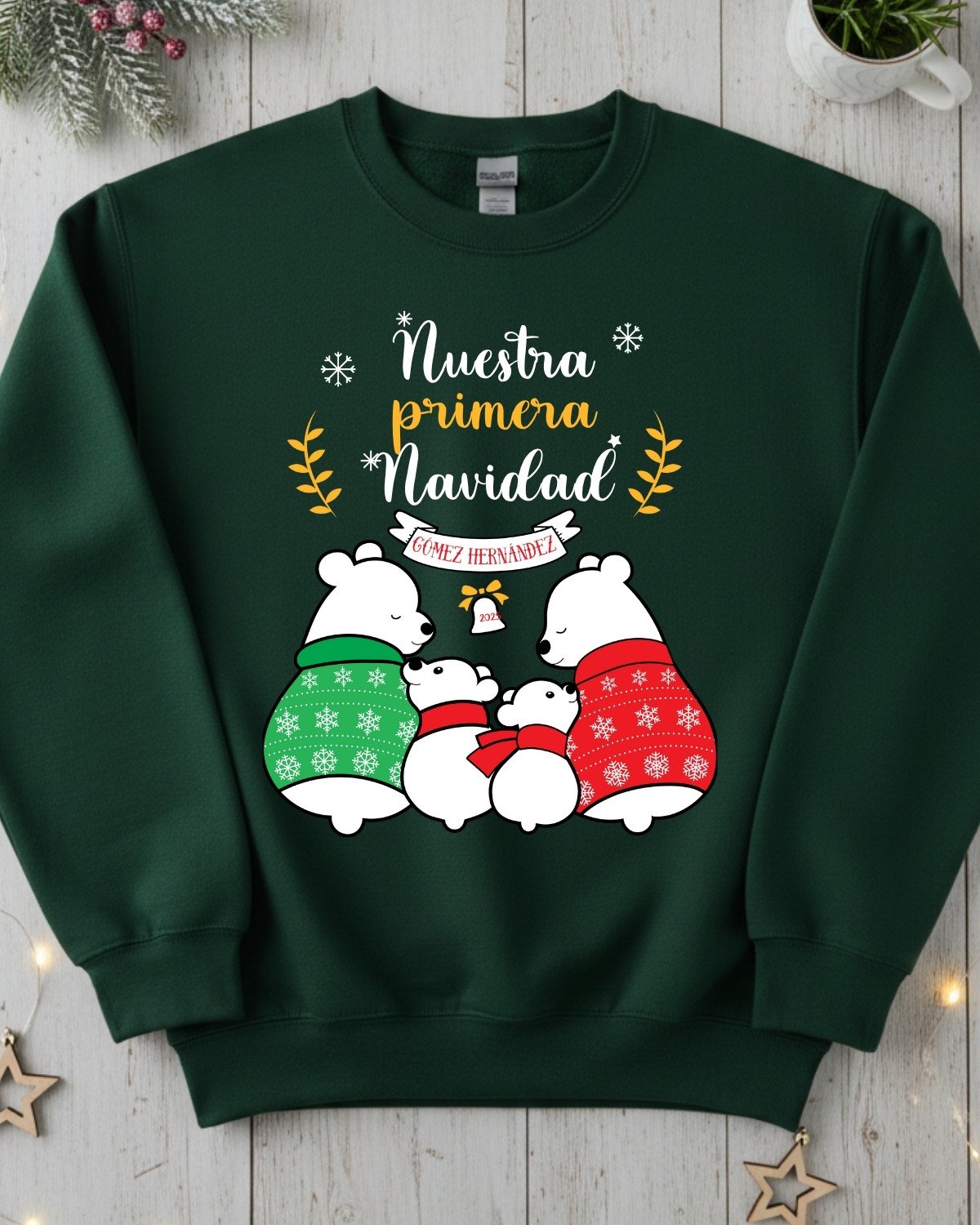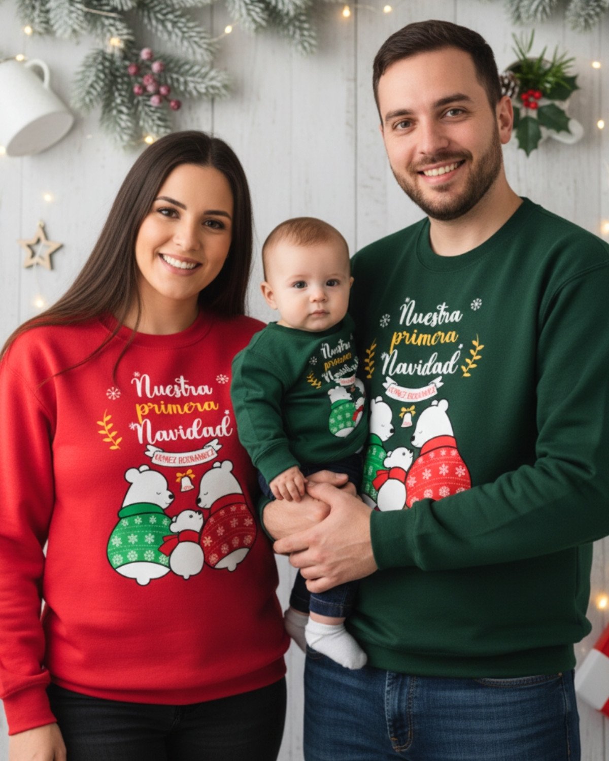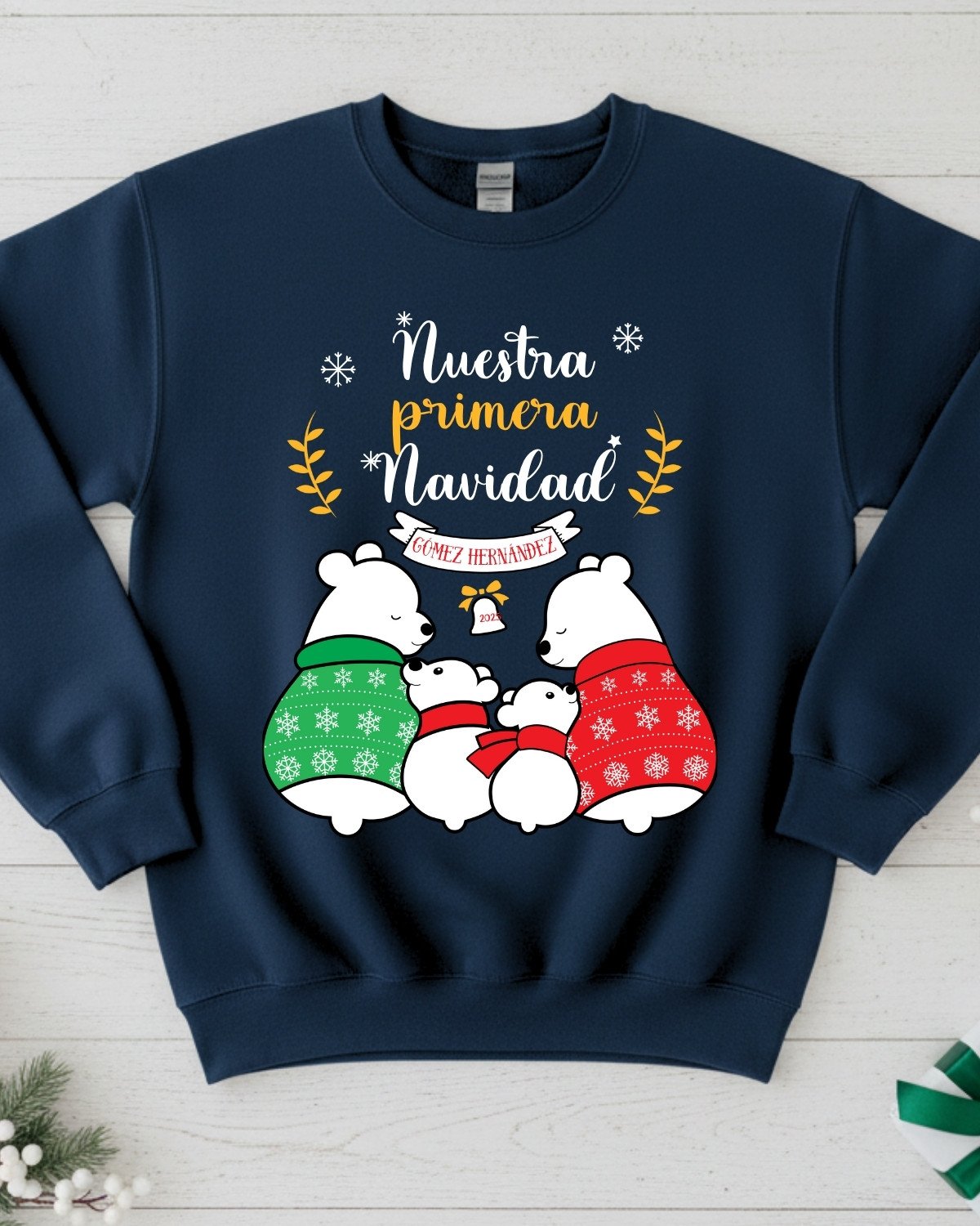 Jersey de Navidad personalizado con Familia de Ositos Polares. Jerséis afelpados, muy suaves, cómodos y calentitos.