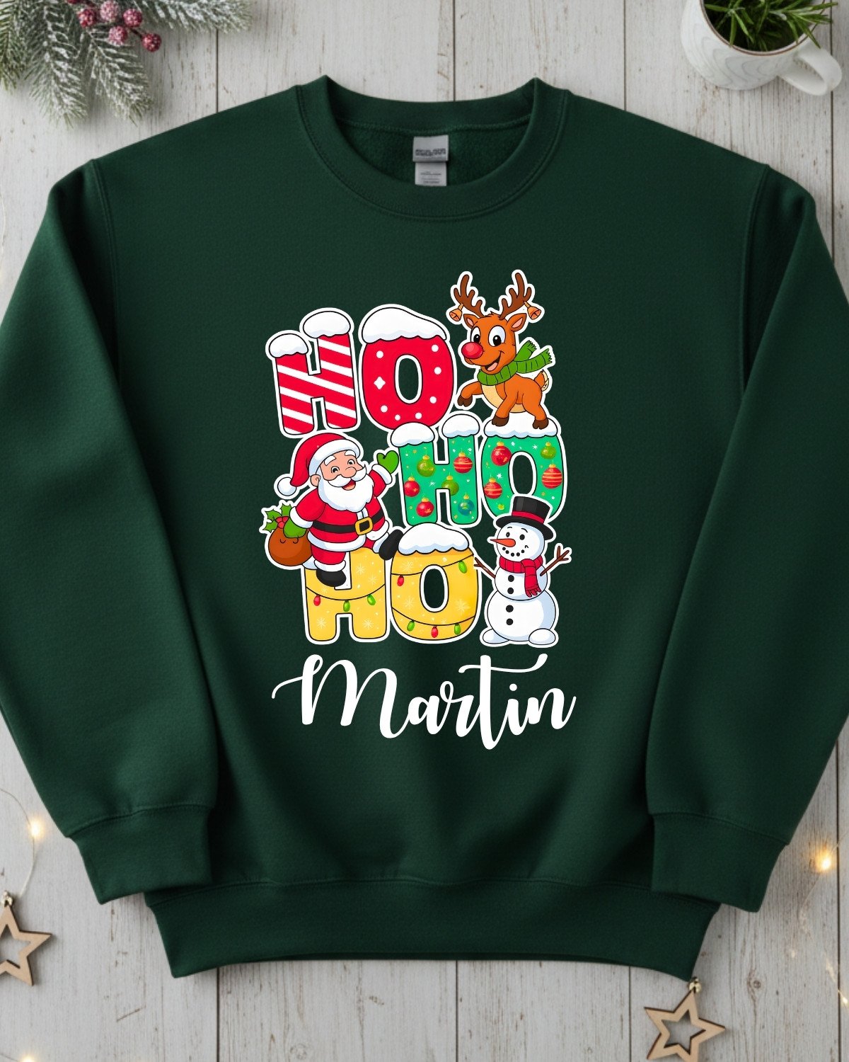 Jersey de Navidad Ho Ho Ho colorido, con Papá Noel, reno y muñeco de nieve. Jerséis afelpados, muy suaves, cómodos y calentitos.